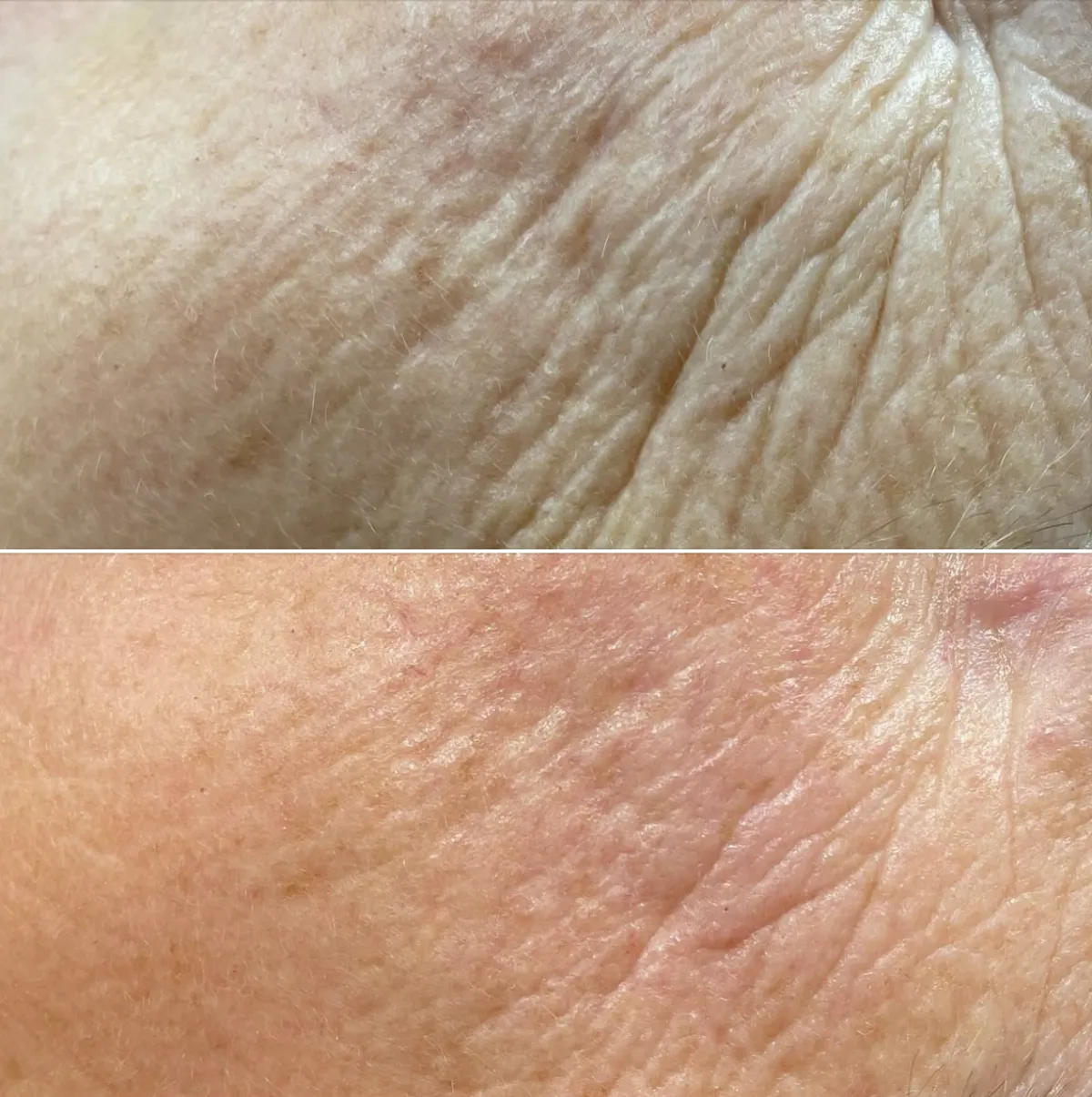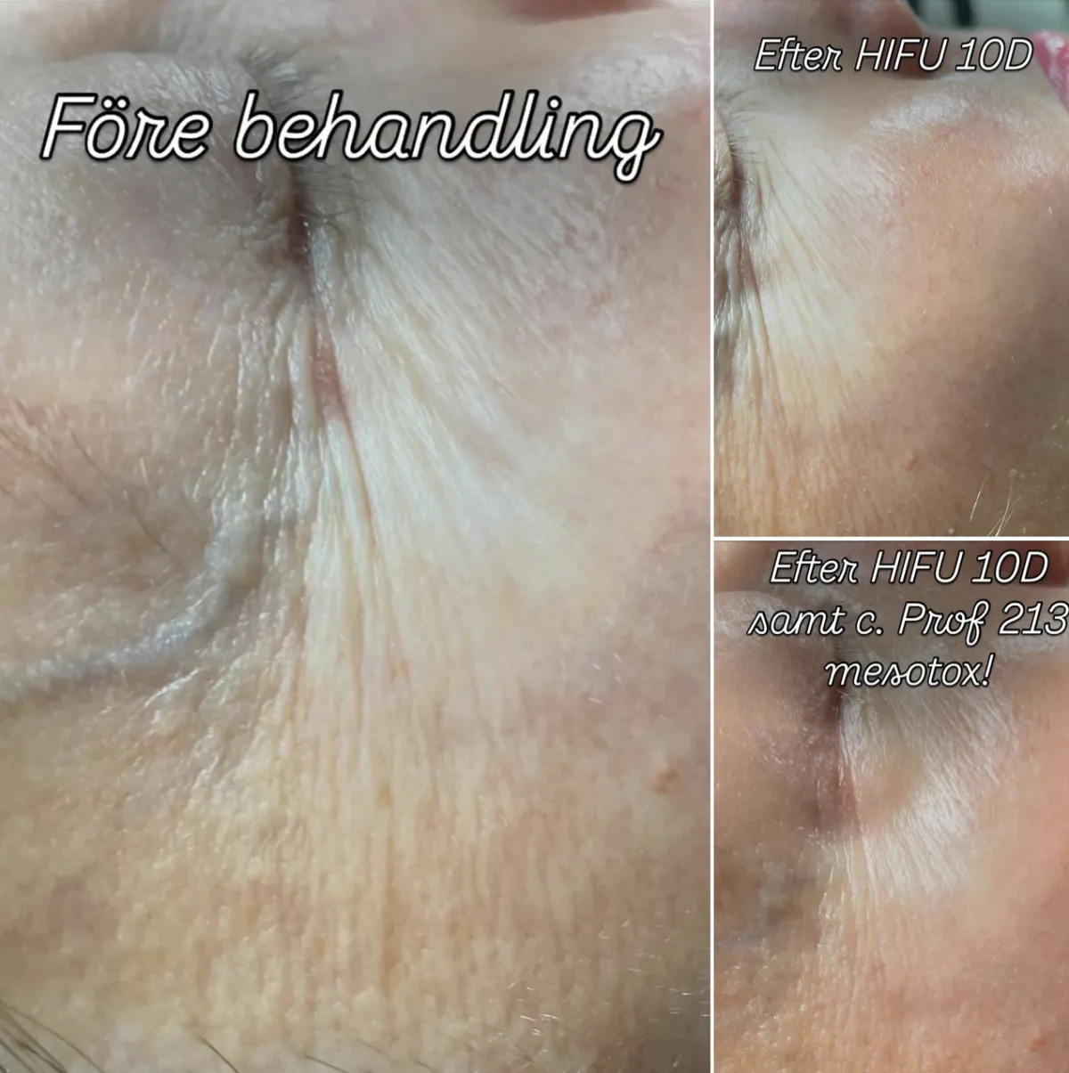 HIFU 10D stramar upp huden och stimulerar kollagen, medan Mesotox ger direktverkande resultat med peptider och niacinamide.
